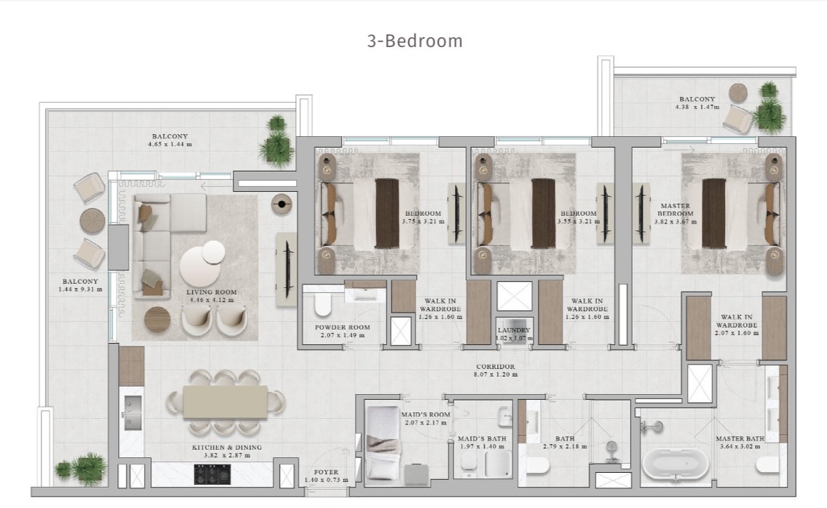 Este apartamento de 3 dormitorios y 3 baños destaca por sus amplios metrajes, diseño contemporáneo y acabados premium, ofreciendo el equilibrio ideal entre confort familiar y estilo de vida sofisticado.