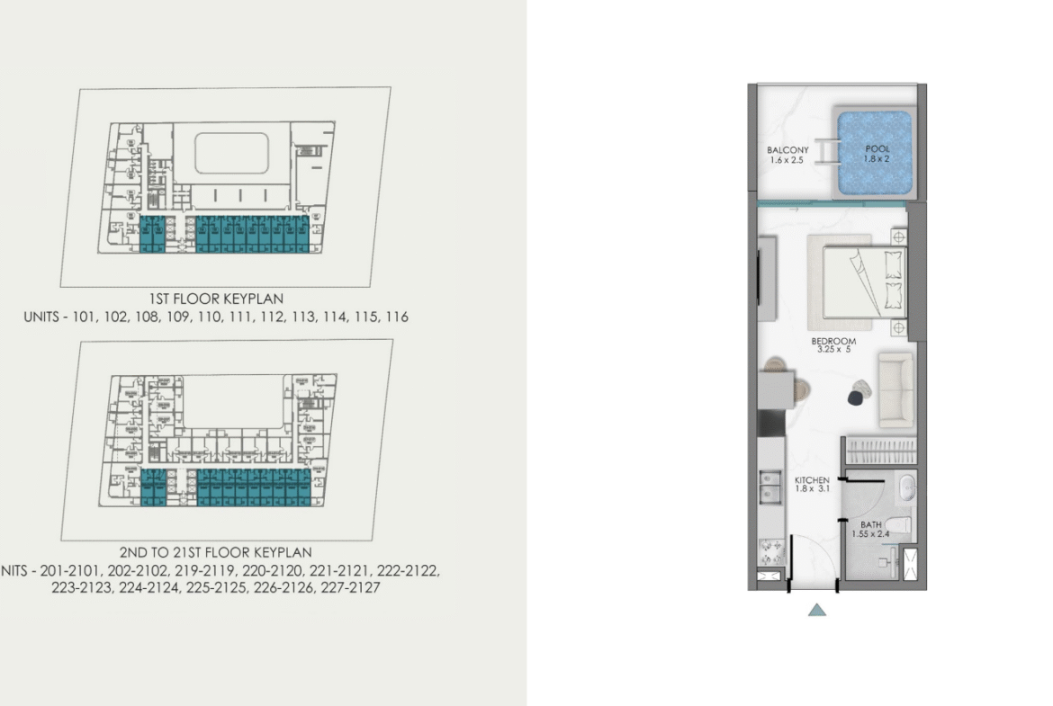 Lo más destacado de Samana Sky es que cada vivienda incluye su propia piscina privada en la terraza, de 1,8 x 2 metros, convirtiendo cada amanecer y cada atardecer en una experiencia única y exclusiva en el cielo de Dubái.