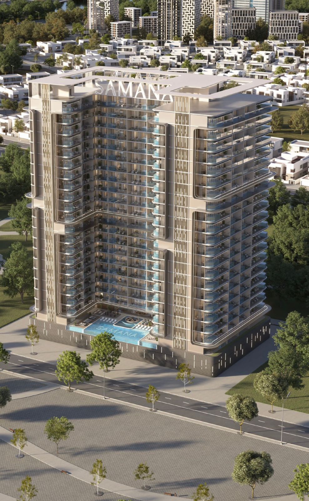 Situado en Samana Skyros, Dubái – Emiratos Árabes Unidos, este proyecto conecta con los principales puntos de la ciudad, rodeado de comercios, centros de ocio, colegios y servicios de primer nivel. Una localización que equilibra el dinamismo urbano con la tranquilidad residencial.